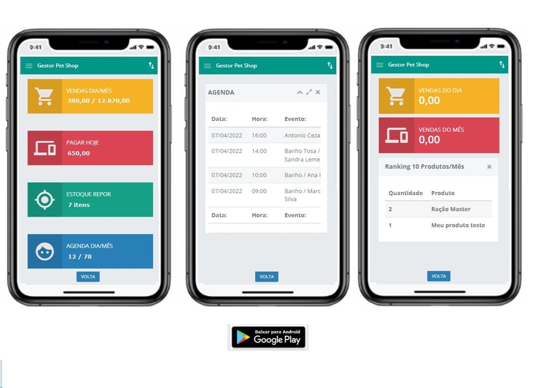 Instale o app para acompanhar no seu celular de onde estiver a Agenda, Produtos, Clientes, Estoque, Financeiro, Vendas, Ranking e muito mais.