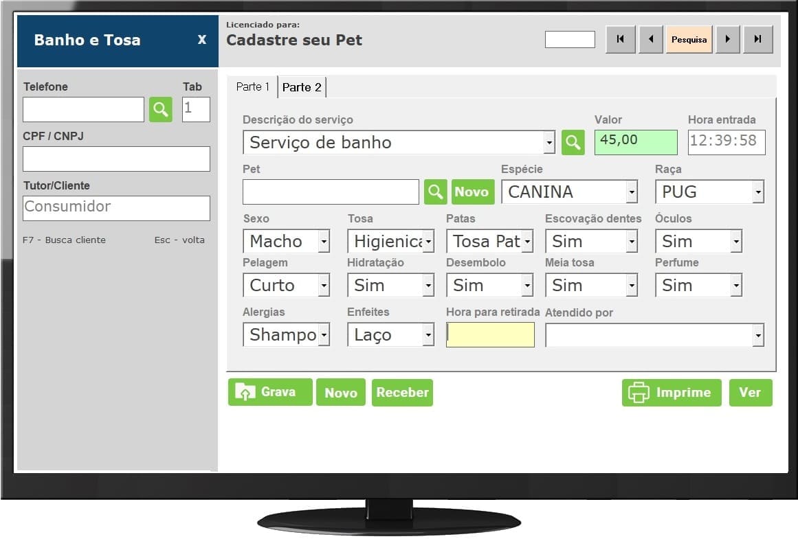 Gestão do banho e tosa do seu Pet Shop, integrado com serviços, financeiro e agenda.