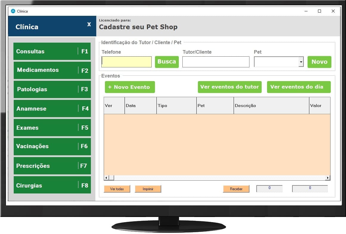 Módulo de clínica completo, Consultas, Medicamentos, Patologias, Anamnese, Exames, Vacinações, Prescrições e Cirurgias.