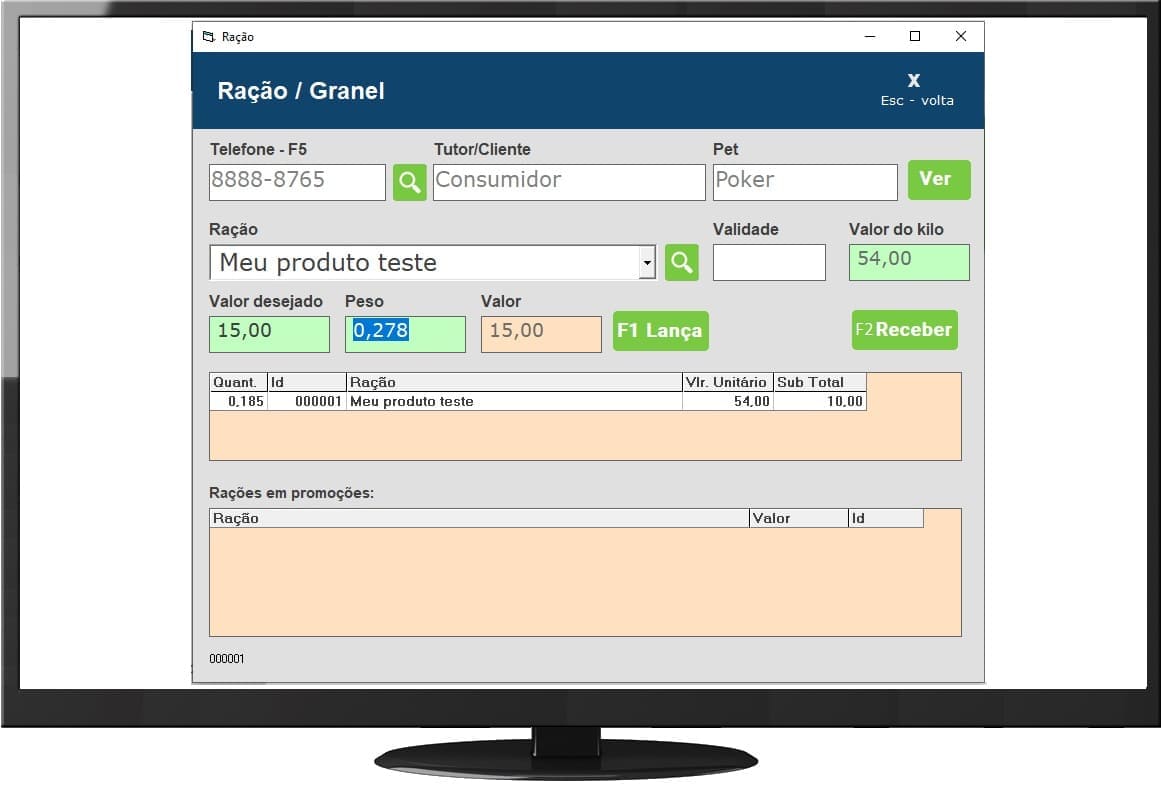 Módulo próprio para venda de ração por peso ou por valor com histórico de compras. Com baixa automática no estoque e lançamento no financeiro.
